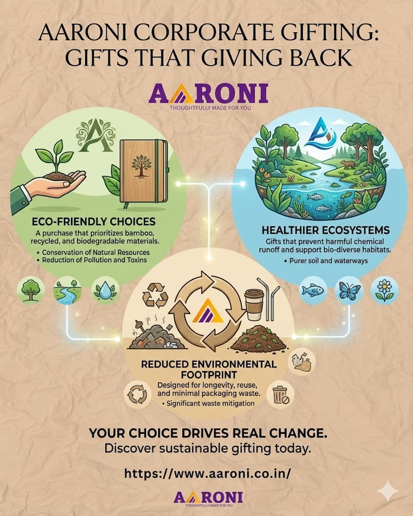 Whether you’re planning employee onboarding kits, eco-friendly corporate gifts, or premium client hampers, Aaroni offers a wide range of solutions tailored to modern business needs.